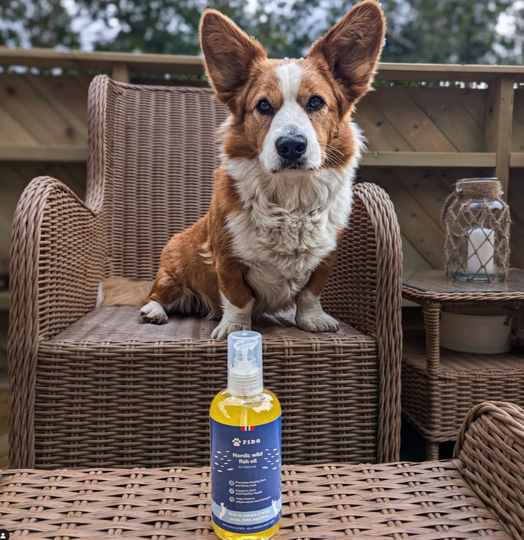 Nordic Wild Fish Oil fra Fido gir myk og blank pels.