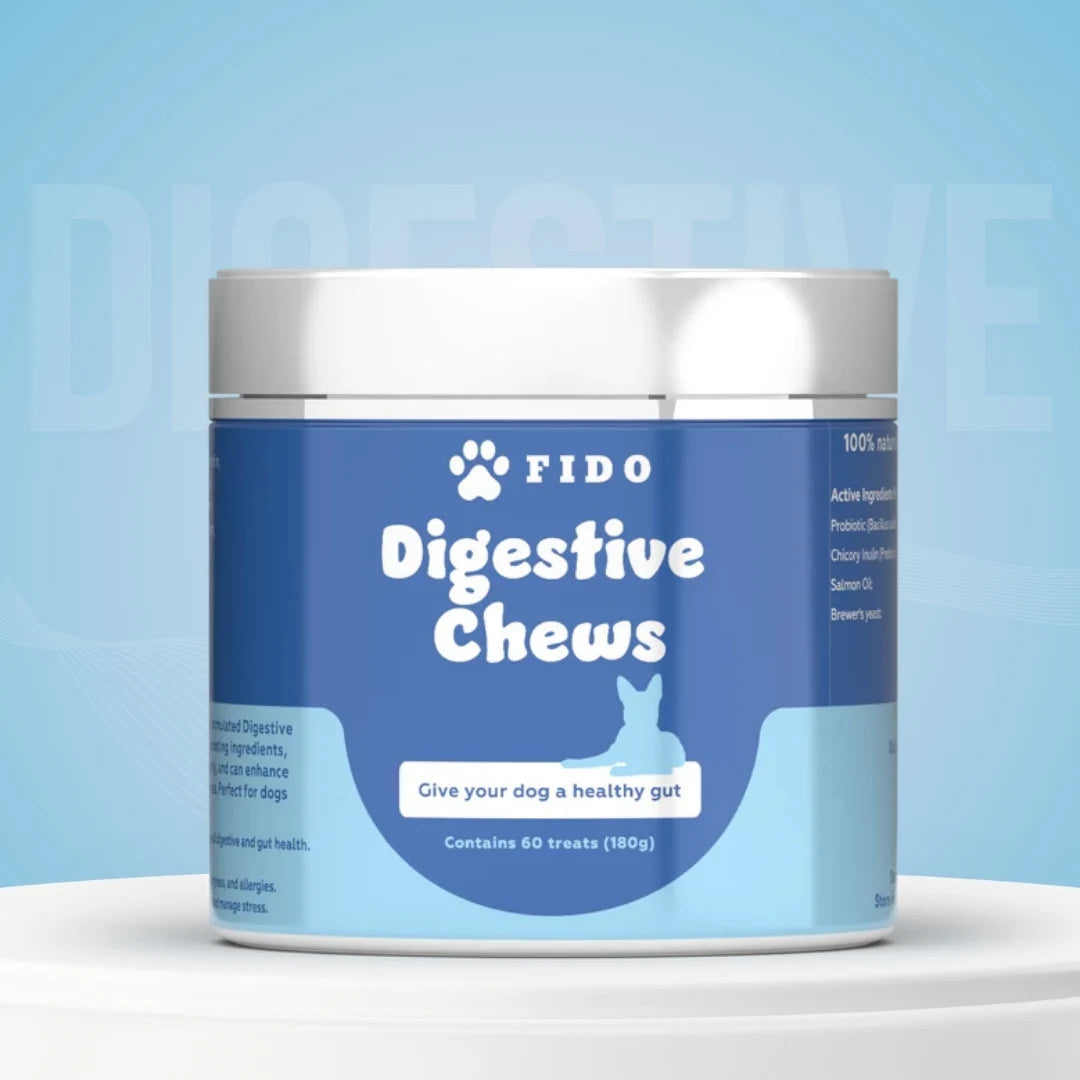 Fido Digestive Chews kombinerer helse og smak i en perfekt balanse. Disse velsmakende godbitene er proppfulle av probiotika og prebiotika som støtter fordøyelsen og kan lindre mageproblemer, styrke immunforsvaret og forbedre hud og pelskvalitet hos vofsen din.